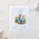 Ilustracion con una cautivadora acuarela de Peter Rabbit, retratado como adorable y clásico. El cuento clásico de Peter Rabbit es el tema perfecto para tu ducha de bebé. La invitación incluye un bonito dibujo acuático del personaje, Peter Rabbit, acentuado con un arreglo de vegetación cepillado. Los detalles de la ducha se muestran en una variedad de tipos de letra complementarios.