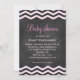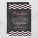 Los chevrons rosados sobre un fondo de tiza ilustrado acentúan el interesante tipo de esta invitación a la ducha de bebé. Si se necesitan elementos de coordinación adicionales para su fiesta, póngase en contacto con nosotros en prettyfancyinvites@gmail.com con su solicitud.