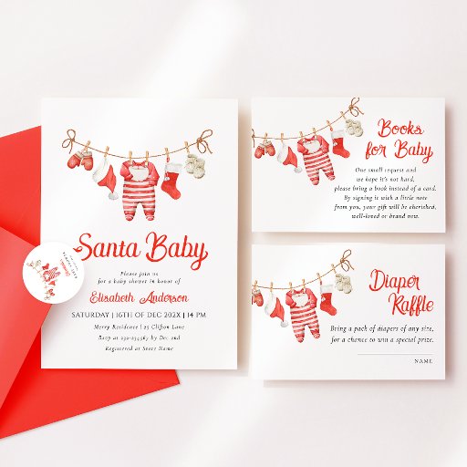 La invitación a la ducha de bebé chica de línea roja inspirada en el Santa Festividad en un rico color rojo para marcar el tono de su evento.