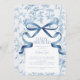 Invitación a Baby Shower de Toile De Jouy Blue Bow