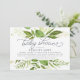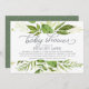 La moderna invitación a la ducha botánica verde para bebés cuenta con un borde superior e inferior de exuberante vegetación acuática en tonos de bosque y verde helecho, con acentos decorativos de tipografía y letras grises y azules ahumadas. Personalice este diseño neutro de género con la redacción deseada de la invitación a la ducha de bebé utilizando los campos de plantilla. Diseñado para coordinar con nuestra invitación a Wild Meadow y nuestra colección de artículos de papelería.