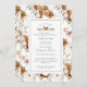 Abran la belleza de la naturaleza y la alegría de nuevos comienzos con nuestra caprichosa invitación a la ducha de flores silvestres pintadas, con flores de terracota y hojas verdes, con un revestimiento de marco blanco y un patrón de flores silvestres sobre un fondo blanco. El marco contiene el texto de la invitación, con tonos otoño y tipo de guión moderno de bonito.