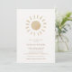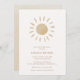 Este diseño rústico de inspiración bohemia de la ducha para bebés cuenta con un sol acuarela y hermosos tonos neutros. La parte trasera de esta invitación tiene un fondo color de agua beige texturado. Un diseño elegante, de moda y adorable de una ducha de bebé.