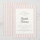 Sofisticada ducha de bebé de chicas con un sencillo patrón de rayas rosadas y blancas, una bonita letra de guion y un guión antiguo. Perfecto para los temas de la ducha infantil de estilo vintage o retro. Para un aspecto texturado de lino, elija el tipo de papel "Laid".