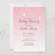 Suave y soñadora, esta invitación a la ducha para bebés tiene una luna creciente y una salpicadura de delgadas estrellas doradas y blancas sobre fondo rosa y blanco degradado. Haga clic en el personalizar para cambiar el estilo de fuente y el color o el tamaño.