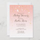 Suave y de ensueño, esta invitación a la ducha para bebés tiene luna creciente y una salpicadura de delgadas estrellas doradas y blancas sobre un fondo rosa degradado. Haga clic en el personalizar para cambiar el estilo de fuente y el color o el tamaño.