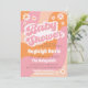 Este chica estilo retro de los años 70 es ideal para una ducha de bebé chica con un fondo rosa y naranja.