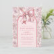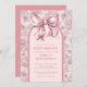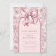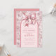 Una bonita ducha con flores de color rosa rosa con el tema de una ducha de bebé adorable con un adorable arco de color rosa pálido con un detalle de arco que incluye múltiples colores de rosa. Mezcla de fuentes con una tipografía serif audaz y un tipo de letra simple y moderno. ¡Celebra que la madre tenga estilo! Disponible en más opciones de arco rosado. Puedes cambiar los colores de las fuentes a lo que quieras. También puede cambiar el color de fondo en la parte delantera y trasera, así como el arco central y su borde. Detrás del arco hay una acuarela de color rosa floral que le da un toque de coqueta. Acuarela Flores Arch Cute Coquette Pink Bow Floral Chica Invitación Baby Shower. Disponible en forma de invitación impresa, o como una invitación digital descargable que puede enviar por correo electrónico o que ha impreso localmente.