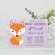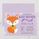 Invitación Baby Shower Chica Winter Purple Fox. Invitación de chica Baby Shower. Invitación Baby Shower de feriado de invierno. Copos de nieve morados y blancos. Fondo de Chevron Púrpura. Para una mayor personalización, haga clic en el botón "Personalizar" y utilice nuestra herramienta de diseño para modificar esta plantilla.