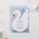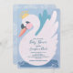 Chicas amables ilustracion de ducha de bebé de una princesa cisne con una tiara de corona de fondo azul. Esta invitación al personalizable es perfecta para duchas de bebé de temática cisne para niñas. El fondo de esta invitación a la ducha de bebé de la princesa cisne tiene el mismo color azul con un suave y delicado overlay blanco.