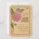 Hermoso diseño rústico de moda chica de ducha de bebé, inspirado en un paquete de semillas de flores de época, perfecto para una ducha de primavera o verano. El diseño de la invitación presenta un ilustracion floral vintage que bordea el texto en una combinación de fuentes coordinadas con un banner adorable dibujado a mano que dice ¡IT'S A CHICA! Un bonito diseño para una ducha rústica de temática vintage. Haga clic en el botón IT PERSONALIZAR para personalizar de fuentes, mueva el texto y cree su propio diseño único de invitación.