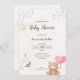 Celebra tu próxima llegada con esta dulce y caprichosa invitación a la ducha de bebé con un oso acuarela sosteniendo un globo de corazón rosa. El suave fondo beige con suaves acentos botánicos, un gorrión volador y una mariposa crea un ambiente tranquilo y amoroso de los bosques, perfecto para una niña o un fiesta neutral en cuanto a género. Características de diseño 🐻: - Oso adorable con ilustracion de globo rosa - Tonos neutros cálidos con acentos florales de color acuático - Diseño elegante de fuentes con caja de fechas estilo vintage - Ideal para las duchas de bebé, neutra o con temática de bosques