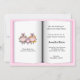 Invitación de Baby Shower al tema del libro para una niña pequeña. Baby Shower Invitation es un libro abierto con información sobre una ducha de bebé para Chicas. La invitación pide libros para una biblioteca para niños.