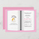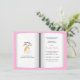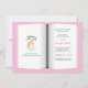 Invitación de Baby Shower al tema del libro para una niña pequeña. Baby Shower Invitation es un libro abierto con información sobre una ducha de bebé chica. El tema de la invitación es una vaca saltada sobre la luna y la Invitación pide libros para una biblioteca para niños.
