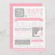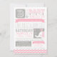 Una tierna invitación a una ducha de bebé para una niña. Pequeño elefante y pájaro, con rayas de chevron, tema poster de circo y tipografía linda!