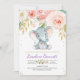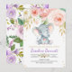 Invitación a Baby Shower Floral de Elefante Morado
