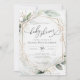 Invitación Baby Shower Geométrica Faux Gold y Greenery. Las acuarelas caprichosas y la tipografía moderna complementan el diseño. Personalice esta invitación de Baby Shower con los detalles de su ducha de bebé de forma fácil y rápida, pulse el botón personalizar para reorganizar más y formatear el estilo y la ubicación del texto.