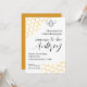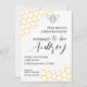Invitación a la ducha de bebé "Mamá en la cama". Colores clásicos blancos y negros con toques de amarillo miel y una linda abeja.
