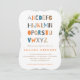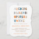 Una encantadora ducha con temática de alfabeto para un niño con un toque de color de moda en azul verde azulado, naranja, gris y marrón. En esta moderna y minuciosa tipografía, a la moda y caprichosa, se revisita una temática tradicional.