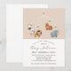 Invitación neutral de género con animales de zoológico girando en un móvil.