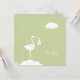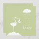 Plantilla de invitación de Baby Shower neutra de personalizable para niñas, niños o gemelos con un lindo ilustracion de cigüeña que da a luz a un bebé y que llueve corazoncitos en verde (se puede cambiar el color). Personalízalo con su propia información o personalizar si necesita ajustar el diseño, el color de fondo o el tamaño de la invitación. También están disponibles sobres y sellos coincidentes.