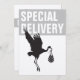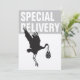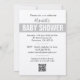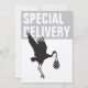 Esta moderna y elegante invitación incluye una cigüeña con su entrega especial. Plantilla de invitación a ducha de bebé neutra de género para personalizar con tu nombre, información y código QR.