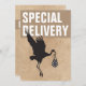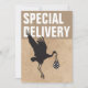 Esta moderna y elegante invitación incluye una cigüeña con su entrega especial. Plantilla de invitación a ducha de bebé neutra de género para personalizar con tu nombre, información y código QR.