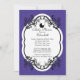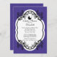 Comience con su elegante ducha de bebé con nuestras populares invitaciones a la ducha de bebé con damascos púrpura de bonito. Nuestra moda y elegante ducha de bebé cuenta con un elegante marco blanco adornado con una bella hoja negra florida sobre un elegante fondo clásico de damasco real morado con una silueta negra y cochecito de bebé. Perfecta invitación a una elegante ducha de bebé con una llamarada de cosecha. Sólo personalizar nuestra invitación a la ducha de bebé con su información de ducha y todo está listo para irse. Disponible en otras combinaciones de colores en nuestra tienda en www.celebrateitinvites.com. Consulte nuestras notas de agradecimiento, pegatinas y botones correspondientes en nuestra tienda