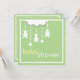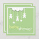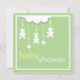 Dulces teddies, corazones y un conejito dangule de una nube blanquecina sobre esta linda y contemporánea invitación a la ducha de bebé. También disponible en azul y rosa: