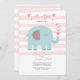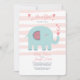 Una invitación a una ducha de bebé dulce con fondo de rayas rosas y blancas y un verde azulado elefante soplando corazones. <a href="https://www.vecteezy.com/free-vector/february">Vectores de febrero por Vecteezy</a>). <br/>() La tarjeta es fácil de personalizar con su redacción, fuente, color de fuente y elección de tipos de papel.<br/>() ¿No es exactamente lo que estás buscando? Todos nuestros productos pueden ser personalizados diseñados para satisfacer sus necesidades sin coste adicional.<br/>() Simplemente contáctenos a heartfelthelper@gmail.com<br/>() Productos de coordinación disponibles: