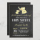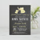 Tarjeta amarilla y gris con fondo de pizarra blanca y negra invitación a Baby Shower para elefantes. Chica o niño invitado por Baby Shower. Para una mayor personalización, haga clic en el botón "Personalizar" y utilice nuestra herramienta de diseño para modificar esta plantilla.