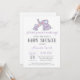 Elephant Baby Shower Invitation Purple and Grey Card. Invitación del chica Baby Shower. Para una mayor personalización, haga clic en el botón "Personalizar" y utilice nuestra herramienta de diseño para modificar esta plantilla.