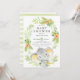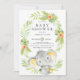 Adorable invitación a una ducha de bebé Safari con el elefante bebé más dulce de color amarillo para una ducha de bebé neutra de género con una franja de color verde. Visita nuestra tienda para ver esta invitación a una ducha de chica o niños.