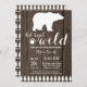 Invitación Rústica Del Oso Polar En Baby Shower.Invitación de invierno a Baby Shower. Invitación a Baby Shower de niño o Chica. Vamos a ser salvajes. Invitación Baby Shower para vacaciones de invierno. Fondo De Madera Rústica. Barniz Retro Vintage del País.
