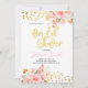 Celebra con estilo esta invitación a bañarse en la ducha dorada floral. Con elegantes acentos dorados con detalles de acuarela floral, este diseño es perfecto para una ducha nupcial de primavera. La combinación de flores blandas y oro metálico crea un estilo sofisticado e intemporal para su celebración pre-boda. Esta ducha con flores de matrimonio es ideal para fiestas de jardín, reuniones de primavera o elegantes duchas interiores. Una moda y una manera memorable de invitar a amigos y familiares a honrar a la futura novia.