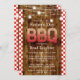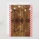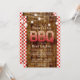 Invite a los invitados a celebrar el Día del Padre con una invitación rústica a barbacoa. Esta invitación a barbacoa incluye madera rústica sobre fondo de cuadros rojos y blancos, linternas de jarrones de albañil y letras BBQ en globo purpurina rojo. Perfecto para su barbacoa de jardín. Fácil de personalizar con los detalles específicos de su fiesta.
