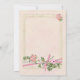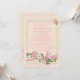 Un fondo blanco y blanquecino con un marco de mármol está bellamente adornado con un spray floral de flores rosas y blancas. Se acentúa con cintas rosas y verdes y un arco. Esta es una invitación de coordinación al Programa Bautista Floral para la Fe Ortodoxa Griega.