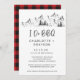 La Invitación a BBQ de Búfalo en el Desierto Rústico es ideal para una fiesta con tema de montaña. Nuestro evento inspirado en la montaña presenta una escena de montaña y bosque ilustrada a mano con un fondo de cuadros de búfalo inspirado en una cabaña, perfecto para su fiesta de compromiso de BBQ de 'I do'.