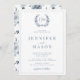 Invitación a Boda Floral Azul Gris Azul Clásico
