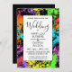 invitaciones de boda personalizadas: con un borde retro de pintura arco iris salpicado con motivos. Esta atractiva pero elegante invitación a la boda es una excelente adición a una elegante colección de bodas de estilo urbano. El texto del Personalizado incluye nombres, fecha y hora, ubicación e información de contacto. El color de fondo también puede cambiar si deseas un poco más de patada.