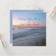 La colección de bodas Beach View ofrece una hermosa y romántica vista de la playa. En la parte delantera del diseño hay una foto con vistas a la playa de olas tranquilas y románticas que se deslizan suavemente sobre la arena y el césped de la línea de la costa al amanecer. El hermoso resplandor del amanecer ha proyectado una gama de colores en el horizonte y reflejando las olas del océano. Al mirar las olas, casi se puede sentir la brisa del océano y degustar la sal en el aire. La foto fue tomada al amanecer en Hilton Head Island, Carolina del Sur. La parte trasera de la invitación está diseñada originalmente en un tono azul apacible, pero puede cambiarse a cualquier color utilizando la característica "personalizar it". Utilice la plantilla de texto personalizado para personalizar sus invitaciones con su propio texto. Este diseño es un complemento maravilloso de cualquier boda exterior o de playa.