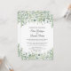 Esta Invitación a la Veranda Botánica presenta una cascada de hojas de eucalipto y ramitas sobre el fondo blanco. Disfrútalo.