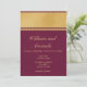 Invitación a la boda con una estampa elegante que satisfará el gusto de los amantes del estilo refinado. El contraste entre amarillo oscuro y borgoña resalta los detalles de este diseño. Puede elegir el tipo de letra, el tamaño y el color del texto según sus deseos.