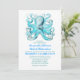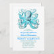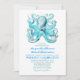 Invitación a bodas en la playa blanca con dibujo de pulpo náutico azul claro. Maravillosa invitación para bodas en la playa, boda costero, bodas de destino tropical. Agarra con cualquier cinta de color, o cuerda pequeña y tendrás una invitación perfecta para tu boda.