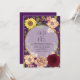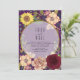 Elegante, moderno, audaz, boho, botánico, borgoña floral, rosa melocotón, dorado y violeta de ciruela capilar invitación a la boda con el moderno guión de caligrafía.