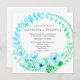 La invitación a Boho Turquoise Floral Rustic Wedding es un encantador diseño floral de acuarela acuática con una hermosa y amplia corona boda de hojas turquesas y acuáticas, flores que incluyen amapolas, frondas de helechos y bayas. Invitación boda elegante, pero muy contemporánea y simplista, de temática botánica rústica.