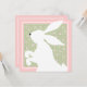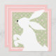 Una bonita silueta de un conejito blanco de Pascua decora esta alegre invitación verde y rosa