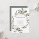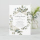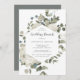 Esta invitación a brunch de boda floral de invierno es perfecta para un brunch de boda elegante. El diseño rústico simple presenta flores blancas con hojas de eucalipto y vegetación invernal, con un ambiente moderno de campo.