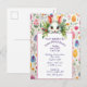 Un conejo blanco de Pascua se asoma sobre el marco para decorar la parte superior de esta invitación.