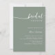 Celebra la futura novia con esta elegante invitación al brunch verde salado con un guión manuscrito y un diseño minimalista. Perfecto para reuniones de jardín, celebraciones modernas o eventos de novias de primavera suave. Elegante y sencillo, con un encanto intemporal, esta invitación marca el tono para un brunch preboda relajado y refinado.